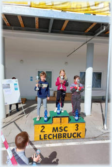 Nach zwei Jahren Pause konnte der MSC Lechbruck am 24. April 2022 wieder einen Lauf im Jugend-Kart-Slalom in der Region Süd sowie zum Zugspitzpokal und der Münchner Oberlandrunde veranstalten. Gewertet wurde diese Veranstaltung als Südbayerischer Meisterschaftslauf mit den teilnehmenden Vereinen MSC Lechbruck, MSC Steingaden, AMC Bernbeuren, MSC Ohlstadt, MSC 12-München, Rapid Lechrain, MSC Olching, MSC Hausham, MSC Geretsried und MSC Altenstadt. Bei trockener Witterung standen 115 Starter und Starterinnen am Start und warteten darauf, den Parcours zu Fuß zu lernen und danach in den Karts mit einem Trainings- und zwei Wertungsläufen absolvieren zu können. Geschick und Können war für den Parcours notwendig – einfach machten es die Lechbrucker ihren Gästen nicht. Unfallfrei und ohne Schäden verlief die Veranstaltung nach den Wünschen der Gastgeber. In der… K1 schaffte es Lena Grieser aufs Siegertreppchen ganz oben und erreichte den 1. Platz. K2 fuhr Paul Natzeder auf den 2. Platz, Mira Jerouschek landete auf Platz 6, Maximilian Hipp auf 12, Gabriel Huber auf 14, Julian Kögler auf 16 und Sarah Ott auf Rang 18. Celina Grieser schaffte in der K3 ebenso einen hervorragenden 2. Platz. K4 fand sich Tobias Gensrich auf dem 4. Rang, Emma Natzeder auf Platz 14 und Fabian Schwingshandl auf Rang 16. Die K6 gewann Sarah Rettinger und rundete das hervorragende Ergebnis der Lechbrucker Kartfahrer ab. Der MSC bedankt sich bei allen Teilnehmern, Eltern, Gästen, Helfern und Anwohnern.