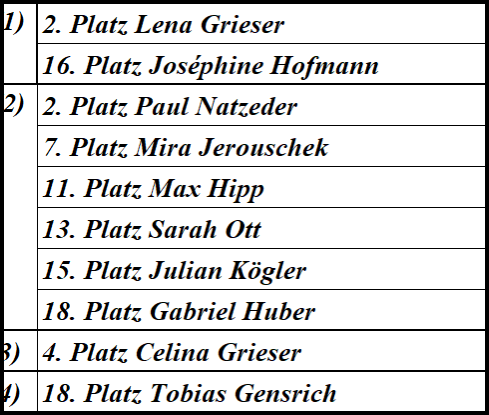der vier fehlerfreie Läufe und einen davonsogar mit Tagesbestzeit absolvierte. als Bayerischer Vizemeister hat sich Paul für die Teilnahme an der  Deutschen Meisterschaft am 22.und 23. Oktober 2022 am Hockenheimring								 qualifiziert!   Einen überragenden 2. Platz bei 32 Startern sicherte sich Paul Natzeder (K2) Gleich drei Lechbrucker Piloten waren am Finale der Bayerischen Meisterschaft am  10. und 11. September 2022 in Marktredwitz am Start.  Lena Grieser (K1) wurde 5. von 33 Startern und verpasste nur knapp die Qualifikation zur  Deutschen Meisterschaft.Tobias Gensrich (K4) fuhr auf Augenhöhe mit den Besten.   Mit einem Fehler wurde er 19. von 32 Startern.  MSC Lechbruck stellt Bayerischen Vizemeister im Jugendkartslalom