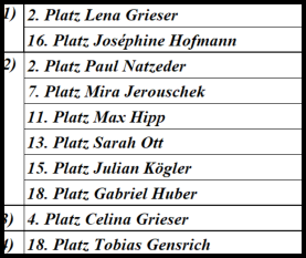 Nach zwei Jahren Pause konnte der MSC Lechbruck am 24. April 2022 wieder einen Lauf im Jugend-Kart-Slalom in der Region Süd sowie zum Zugspitzpokal und der Münchner Oberlandrunde veranstalten. Gewertet wurde diese Veranstaltung als Südbayerischer Meisterschaftslauf mit den teilnehmenden Vereinen MSC Lechbruck, MSC Steingaden, AMC Bernbeuren, MSC Ohlstadt, MSC 12-München, Rapid Lechrain, MSC Olching, MSC Hausham, MSC Geretsried und MSC Altenstadt. Bei trockener Witterung standen 115 Starter und Starterinnen am Start und warteten darauf, den Parcours zu Fuß zu lernen und danach in den Karts mit einem Trainings- und zwei Wertungsläufen absolvieren zu können. Geschick und Können war für den Parcours notwendig – einfach  machten es die Lechbrucker ihren Gästen nicht. Unfallfrei und ohne Schäden verlief die Veranstaltung nach den Wünschen der Gastgeber. In der… K1 schaffte es Lena Grieser aufs Siegertreppchen ganz oben und erreichte den 1. Platz.  K2 fuhr Paul Natzeder auf den 2. Platz,  Mira Jerouschek landete auf Platz 6,  Maximilian Hipp auf 12, Gabriel Huber auf 14, Julian Kögler auf 16 und Sarah Ott auf Rang 18. Celina Grieser schaffte in der K3 ebenso einen hervorragenden 2. Platz. K4 fand sich Tobias Gensrich auf dem 4. Rang, Emma Natzeder auf Platz 14 und  Fabian Schwingshandl auf Rang 16. Die K6 gewann Sarah Rettinger und rundete das hervorragende Ergebnis der  Lechbrucker Kartfahrer ab.  Der MSC bedankt sich bei allen  Teilnehmern, Eltern, Gästen,  Helfern und Anwohnern.  Zugspitzpokal und Münchner Oberlandrunde Hervorragender Saisonseinstieg 2022für die Kartgruppe des MSC-Lechbruck 1. Lauf Zugspitzpokal des MSC-Lechbruck am 24.04.2022 Erfolgreiche Teilnahme der Jugend-Kartleram 29. Mai 2022beim MSC am Tegernsee Wir möchten uns an dieser Stelle nochmals bei allen bedanken, die uns das ganze Jahr 2022 über so tatkräftig unterstützen – Eltern, Trainer, Geschwister, Verwandte, Freunde, Vereinsmitglieder und natürlich bei den Sponsoren.  Zum Saisonende traten wir am 31.07.2022 beim MSC Marktoberdorf zur ADAC Südbayern Mannschaftsmeisterschaft im Jugendkartslalom an. Lena Grieser durfte aufs Treppchen und sich über einen ersten Platz freuen. Paul Natzeder landete auf dem 14. Platz in der K2. Celina Grieser durfte in der K3 aufs Treppchen und freute sich über ihren dritten Platz. Tobi Gensrich schaffte es in der K4 auf den vierten Platz. In der Mannschaftswertung schafften wir es aufs Treppchen – hervorragender dritter Platz – HURRA.  Voller Vorfreude ging es zum Endlauf der südbayerischen Kartslalom Meisterschaft beim Racing Team Königsbrunn am 23. und 24.07.2022. Ausgestattet mit neuen T-Shirts für Fahrer und Eltern gesponsert vom Bauunternehmen Toni Ungelert gingen wir bei tropischen Temperaturen an den Start. Lena Grieser stellte ihr Talent unter Beweis und fuhr auf einen hervorragenden sechsten Platz von 24 Teilnehmern in der K1. Nicht ganz so gut ging es Paul Natzeder mit einem 21. Platz und Mira Jerouschek mit dem 28. Platz – von insgesamt 29 Startern in der K2. Celina Grieser belegte den zehnten Platz von 24 Startern in der K3.  Herzlichen Dank an die Firmen Opel Meier, Bauunternehmen Toni Ungelert, Versicherungsmakler Ulrich Leiterer, Stefan Leiterer Haustechnik und Baggerbetrieb Natzeder die unsere neuen Rennanzüge gesponsert haben.   In der Gesamt-Klassenwertung erreichte Lena Grieser in der K1 einen herausragenden 1. Platz und qualifizierte sich somit zum Endlauf um die Südbayerische Meisterschaft.  Ebenso Paul Natzeder in der K2 mit einem hervorragenden 2. Platz und Mira Jerouschek mit einem super 8. Platz. Den gleichen Erfolg konnte Celina Grieser in der K3 mit ihrem 2. Platz erzielen. Als Mannschaft haben wir uns ebenfalls für den Südbayerischen Endlauf am 31.07.2022 beim MSC Marktoberdorf qualifiziert – ein herzliches Dankeschön an alle Fahrerinnen und Fahrer, ohne euch hätte das nicht geklappt. Abschließend gings noch zum AC Garmisch-Partenkirchen am 17.07.2022 K1)	2. Platz Lena Grieser 	12. Platz Joséphine Hofmann K2)	2. Platz Paul Natzeder 	9. Platz Sarah Ott 	12. Platz Mira Jerouschek 	13. Platz Gabriel Huber 	20. Platz Max Hipp K3)	5. Platz Celina Grieser K4)	5. Platz Tobias Gensrich  Am 5. Lauf zur Südbayerischen Meisterschaft sowie dem 9. Lauf um den Zugspitzpokal und einem Lauf zur MOR startete unsere Truppe am 10.07.2022 beim MSC Ohlstadt K1)	2. Platz Lena Grieser 	16. Platz Joséphine Hofmann K2)	3. Platz Paul Natzeder 	8. Platz Mira Jerouschek 	12. Platz Sarah Ott 	17. Platz Gabriel Huber 	29. Platz Max Hipp K3)	4. Platz Celina Grieser K4)	12. Platz Tobias Gensrich 	22. Platz Emma Natzeder 	25. Platz Fabian Schwingshandl Kuchenverkauf beim Kunstmarkt am 09./10. Juli 2022 – Erlös geht an den Nachwuchs des MSC. Wie in den letzten Jahren sorgten die örtlichen Vereine für die Verpflegung der zahlreichen Besucher. Der MSC Lechbruck übernahm wieder den Verkauf von Kaffee und Kuchen – und konnte dem Andrang fast nicht standhalten: 450 Tassen Kaffee und ca. 800 Stück Kuchen und Torte wurden verkauft. Wir bedanken uns im Namen unseres Nachwuchses nochmals ganz herzlich bei allen Bäckerinnen und Bäckern.  Weiter ging es am 03.07.2022 beim Nachbarverein MSC Steingaden K1)	2. Platz Lena Grieser 	12. Platz Joséphine Hofmann K2)	6. Platz Mira Jerouschek  	9. Platz Paul Natzeder 	12. Platz Gabriel Huber 	14. Platz Max Hipp 	15. Platz Sarah Ott 	17. Platz Julian Kögler K3)	9. Platz Celina Grieser K4)	9. Platz Emma Natzeder 	12. Platz Fabian Schwingshandl 	16. Platz Tobias Gensrich  Rennen beim MC-Neuhausen München am 26.06.2022 K1)	1. Platz Lena Grieser 	15. Platz Joséphine Hofmann K2)	4. Platz Paul Natzeder 	9. Platz Sarah Ott 	15. Platz Gabriel Huber 	21. Platz Mira Jerouschek K3)	3. Platz Celina Grieser K4)	9. Platz Tobias Gensrich 	12. Platz Emma Natzeder  Auf neuem Terrain bewegten sich unsere Jugendlichen am 09.07.2022 in Steingaden. Dort fand ein Lauf zum Bayerischen ADAC eKartslalom statt. Es war eine Umste