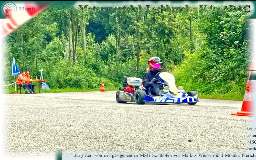 Fotos:  Marianne Schwaiger   Text:  Monika Müller  Die nächste Veranstaltung findet am 29.06.2025 beim MSC 12 in München statt. Zum 5. + 6. Lauf zur Südbayerischen ADAC 270 Kartslalom Meisterschaft Region West lud die MSG Sonthofen auf ihr Vereinsgelände ein. Wieder galt es, einen schnellen Parcours fehlerfrei zu durchfahren. Trockene Witterung mit zeitweise frischem Wind bot eine hervorragende Grundlage für den Wettbewerb, auch die Stimmung unter den 68 Teilnehmenden und auch den Zuschauenden war extrem entspannt. Gewertet wurden die Läufe auch für die BMV-Qualifikation. Acht Starter vom MSC Lechbruck nahmen an der Veranstaltung teil und konnten mit ihren Leistungen zufrieden sein: In der K1 positionierte sich Mira Rotondaro auf Rang 11 und 12, Gabriel Huber auf Rang 12 und 14 – beide mit fehlerfreien Läufen. In der K2 erreichte Simon Leiterer Platz 18 und 19, Teamkollege Fabian Schwingshandl Platz 19 und 21. Beide hatten leider in je einem Lauf 3 Strafsekunden.  Auf Rang 7 und 6 landete Jugendleiter Giovanni Rotondaro, er absolvierte fehlerfreie Läufe.  In der K4 verpasste Boris Huber im 6. Lauf knapp das Treppchen – mit seinen Zeiten errang der den 4. Platz, im 5. Lauf reichte es nur für Platz 11. Thomas Lehmann konnte sich zum letzten Mal verbessern und fand sich auf Platz 12 und 13. David Marby hatte dieses Mal leider etwas Pech und erreichte einen 14. Platz (mit 6 Strafsekunden) und einen guten 8. Platz  Am 24.05.2025 fand der  •	5. + 6. Lauf zur Südbayerischen ADAC 270 Kartslalom Meisterschaft Region West 270 Kartslalom beim MSG Sonthofen Am 12.07.2025 geht es zur Scuderia Kempten und am 20.09.2025 zur Gemeinschaftsveranstaltung Region West des MSC Al-Corsa nach Ulm  In der Region Nord lockt noch folgende Veranstaltung zur Teilnahme: am 12.07.2025 bei der MSG Bayer. Wald Hutthurm Ein freies Wochenende – strahlender Sonnenschein: Auf geht’s in die Nachbarregion zur Region Süd und dort an den Start zum 5. und 6. Lauf der diesjährigen ADAC-Meisterschaft. Unser Nachwuchstalent Gabriel Huber startete in der K1 und erreichte dort gute Plätze im Mittelfeld. Die „Senioren“ traten in der K4 an den Start – Boris Huber landete auf Rang 4 beim 5. Lauf und verpasste somit nur knapp das Treppchen, beim 6. Lauf hatte er die schnellste Rundenzeit, allerdings waren auf seiner Strecke etwas instabile Pylonen, die dem Fahrtwind nicht standhielten. David Marby gab im 6. Lauf so richtig Gas und erreichte fehlerfrei den 4. Platz. Neueinsteiger Thomas Lehmann war mit Platz 13 zufrieden, feilt aber noch an Verbesserungen für die nächsten Läufe. Am 31.05.2025 fand der  •	5. + 6. Lauf zur Südbayerischen ADAC 270 Kartslalom Meisterschaft Region Süd 270 Kartslalom beim MSC Altenstadt