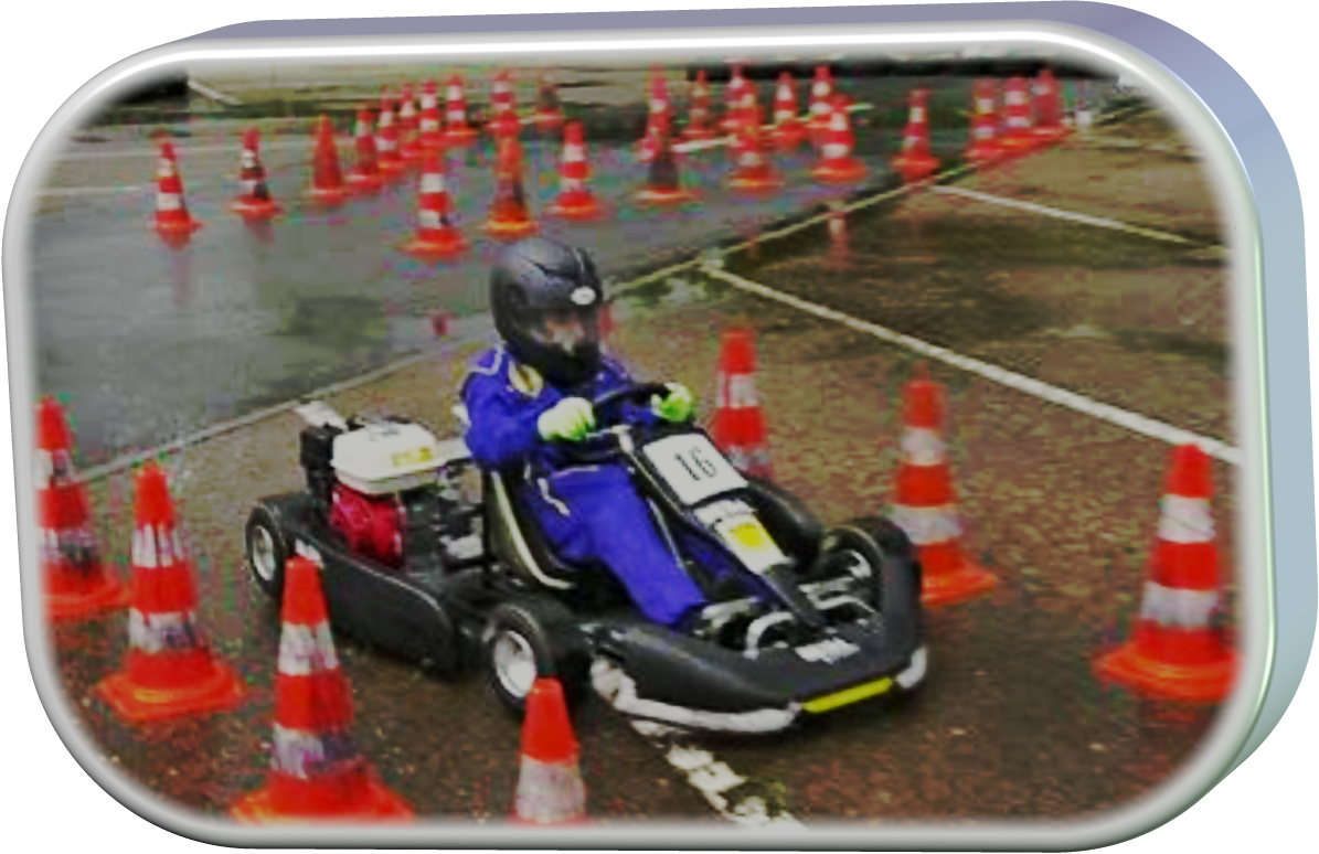 Was ist ein KartslalomKartslalom ist die Breitensportvariante des Kartsports. Hierbei wird auf Karts mit Viertaktmotoren auf Parkplätzen oder ähnlichen befestigten Plätzen auf einem mit Pylonen abgesteckten Kurs gegen die Zeit gefahren. Dabei ist immer nur ein Fahrer auf der Strecke.Ein ADAC unterstützter Motorsport, der sich ins besondere auf Jugendliche konzentriert.Ziel dabei ist es im fairen, sportlichen Wettbewerb die Geschicklichkeit und dieKonzentration im Umgang mit motorisierten Fahrzeugen zu fördern.Ausgestattet mit Helm und Kartanzug bewegen sich die Fahrer mit sogenannten Slalom-Karts durch einen Parcours aus Pylonen.Hierbei gilt es verschiedene Aufgaben zu bewältigen, die immer unterschiedlich miteinander kombiniert werden können.Egal ob es um Spurgassen, Schweizer Slalom oder das exotisch klingende deutsche Eck geht, es gilt immer > Nichts umwerfen!Denn beim Kartslalom geht es nicht nur um Schnelligkeit, sondern auch darum sich den Parcours zu merken und sich geschickt zwischen den Pylonen hindurch zu bewegen.So wird die Zeit jeder gefahrenen Runde erfasst und pro verschobener oder gefallener Pylone um zwei Sekunden erhöht.